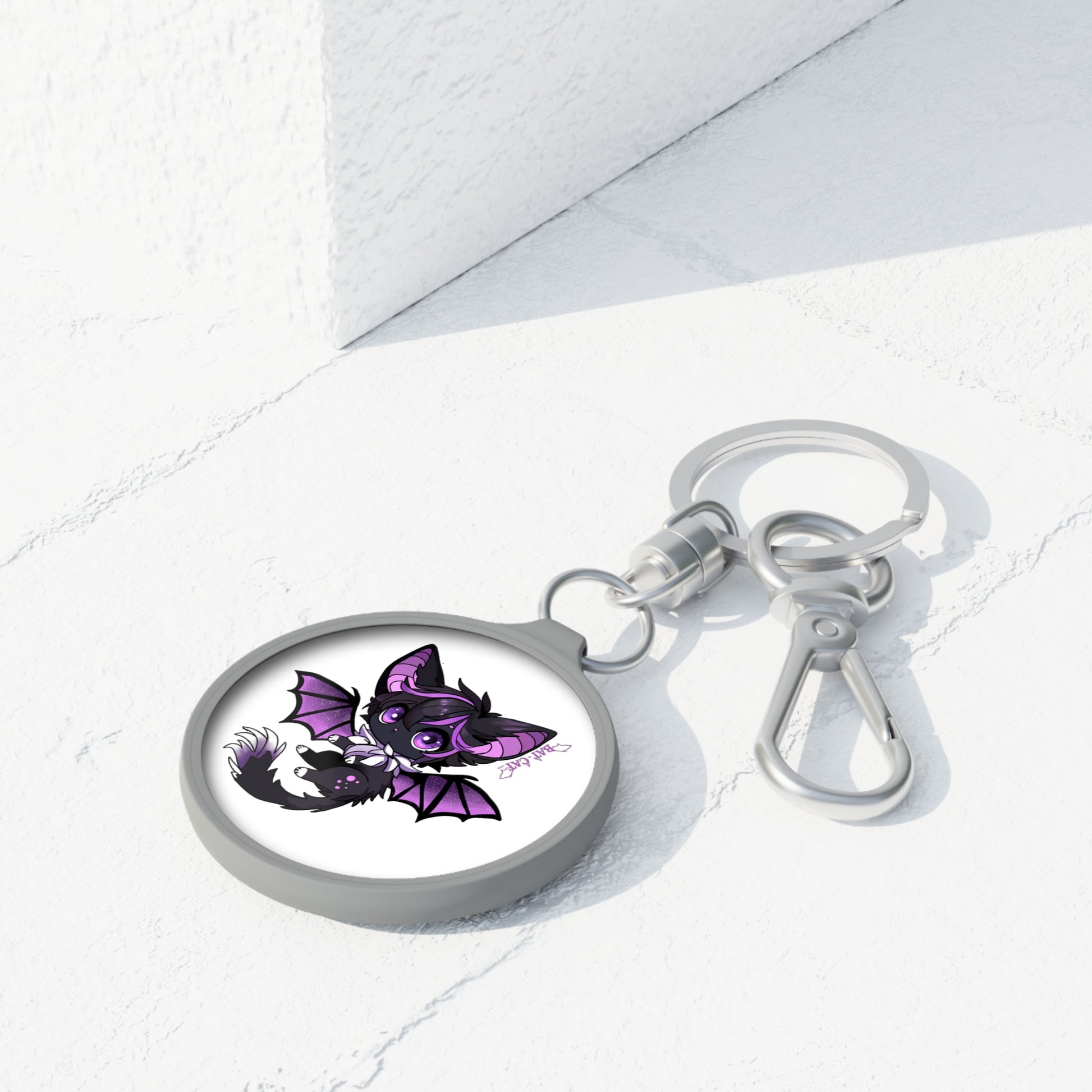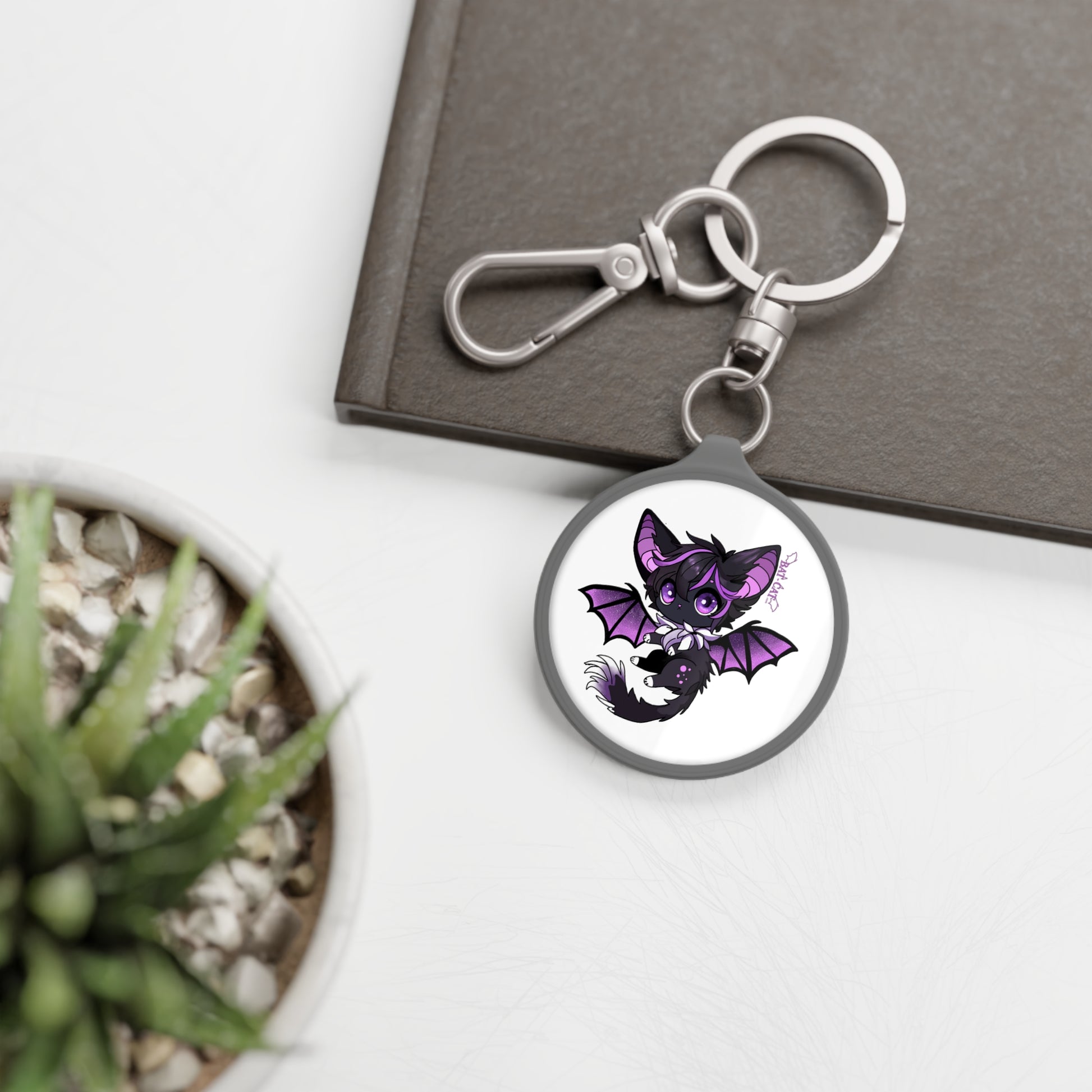 Purple Bat-cat keychain/keyring