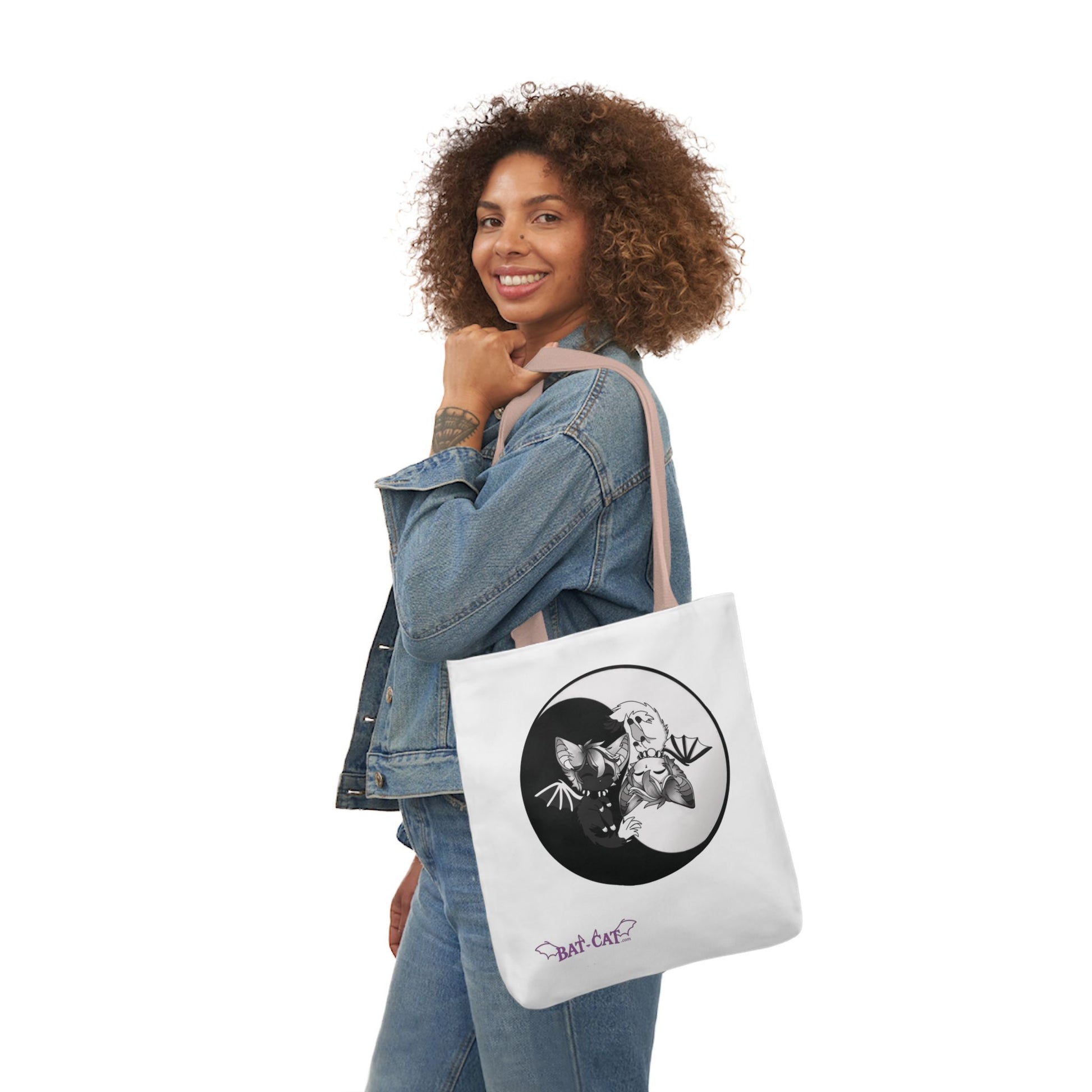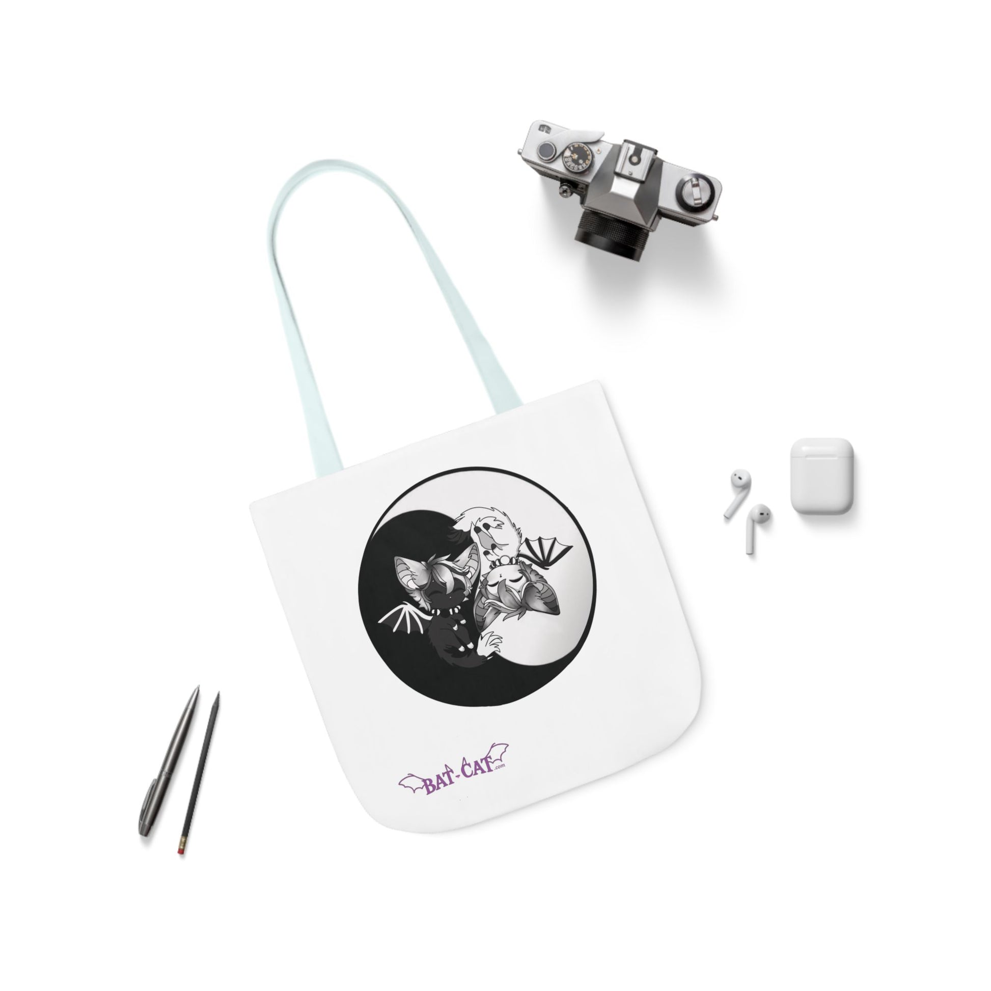 Lightweight, durable, and ideal for printing your artwork in picture-perfect quality—this polyester canvas tote bag does it all. The inside has a sleek, black lining and its comfortable straps come in five beautiful colors. Choose any (or all) of the three sizes—for quick errands, shopping trips, and longer travels.